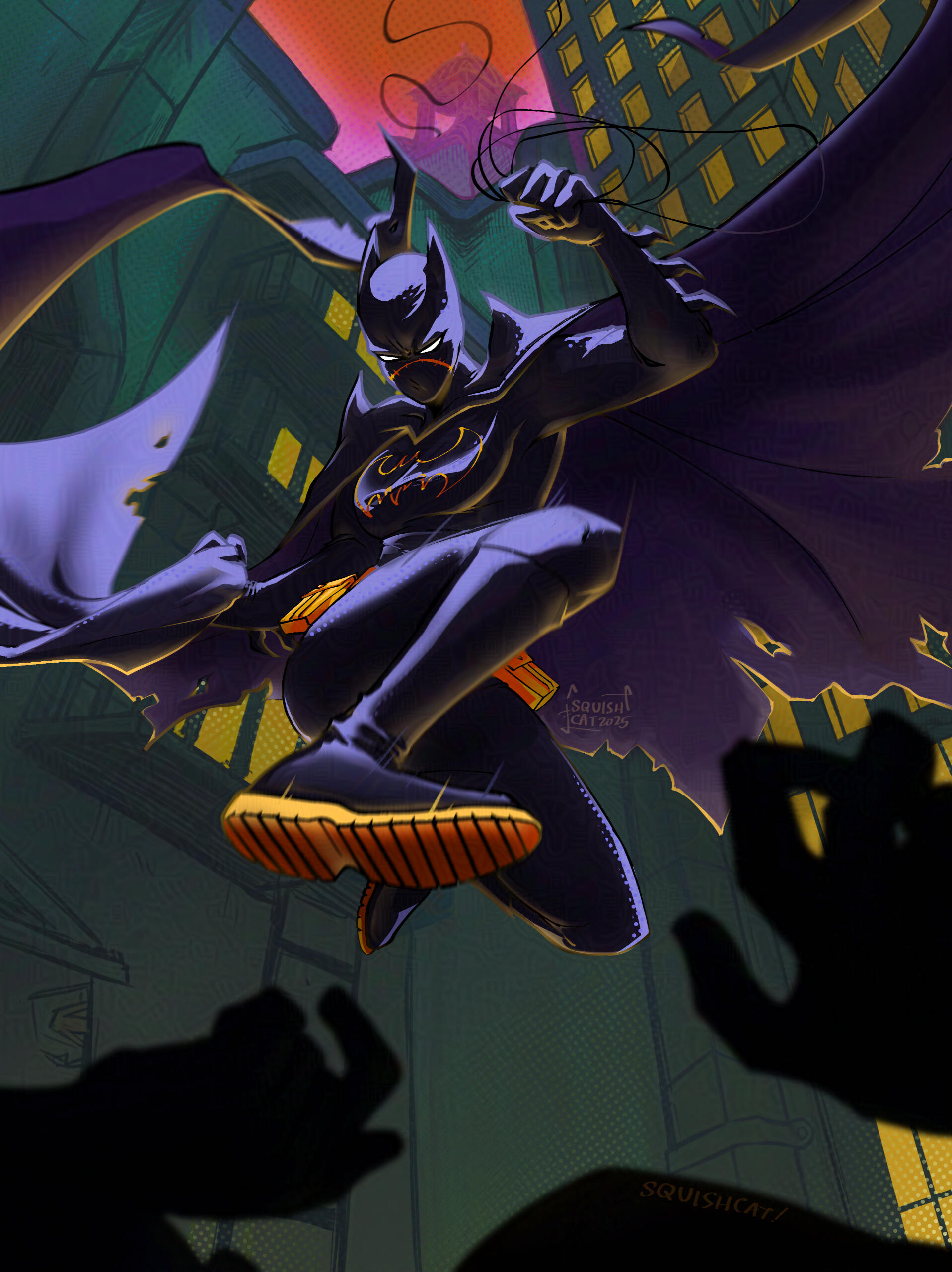 two heroes work together to take down a mechanically equipped bird-themed villain and his grunts.